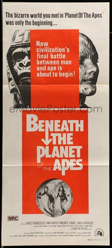 The answer here is that the distributor 20th Century Fox's credit is missing from both the original Beneath The Planet Of The Apes daybill posters. The original Australian one sheet and the post 1971 daybill version of the poster again were printed by MAPS but this time have the 20th Century Fox name appearing on them.