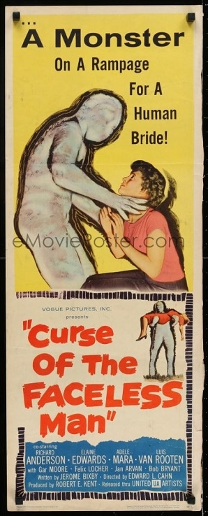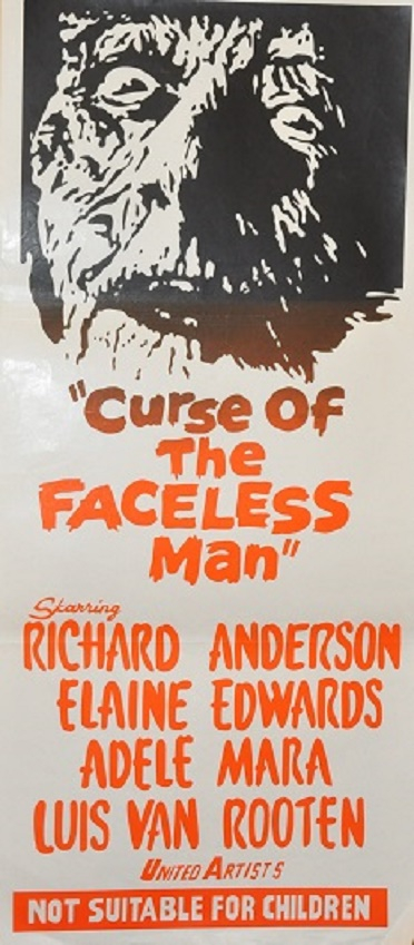 Interestingly a third duotone version of Curse Of The Faceless Man has tuned up. It is a slightly different attered version to one of the earlier posted daybill images as seen above. Only this time this version left off the mummy image. Judging by the UA logo style both these posters would have been printed fairly close together I am thinking.