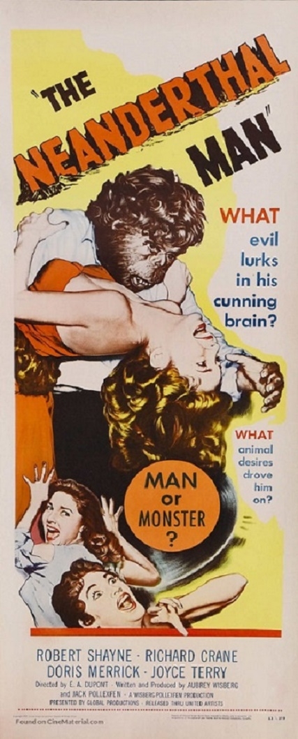I have recently discovered that there is a copy existing of an Australian colour daybill for The Neanderthal Man residing at the National Film And Sound Archive Of Australia (NFSA). Unfortunately there isn't an image available, along with no images existing for the vast majority of their owned material. A staff member of NFSA informed me that there are countless posters which includes The Neanderthal Man not yet photographed due to the huge tine factor of doing this.